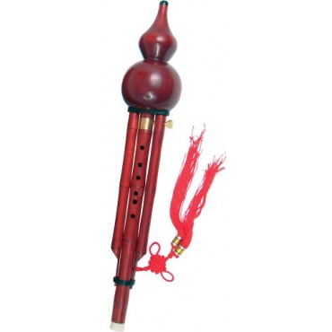 Diese besondere chinesische Flöte ist ein traditionelles asiatisches Instrument und in Europa nur selten zu finden. Sie besteht aus rot lackiertem Holz, welches zum besonderen Schutz mit einem Lack überzogen ist. Das asiatische Aussehen und der außergewöhnliche Klang sind besondere Merkmale dieser Flöte. Der kernige Ton entsteht durch die Wölbungen am Kopf der Flöte und wird durch die beiden Flöten an der Seite verstärkt.