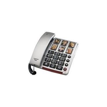 Mit dem Audioline Big Tel 40 Telefon fällt es auch älteren Menschen leichter, telefonisch in Verbindung zu bleiben. Das Telefon bietet verschiedene einfache Möglichkeiten, um Rufnummern zu speichern.Im oberen Teil des Gerätes sind sechs vorgrogrammierbare Tasten mit Bild angebracht, bei denen man nur auf das Bild der Person zu drücken braucht, um die gewünschte Nummer zu wählen. Darüber hinaus gibt es noch zehn Kurzwahlspeicher.