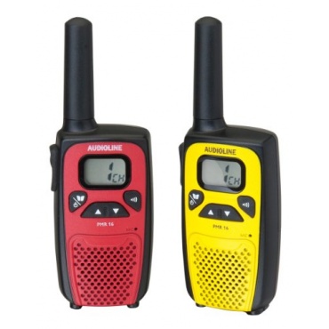Die Audioline PMR 16 Funkgeräte ist einfach und leicht zu bedienen. Durch die kräftigen Farben sind sie besonders bei Kindern beliebt. Die Gründe sind die, für Kinderhände, gute Progresse und die robuste Bauweise, sowie der günstige Preis. Die Reichweite auf dem freien Feld ist fünf Kilometer und in einem bebauten Gebiet entsprechend weniger. Die beiden Funkgeräte verwenden jeweils drei handelsübliche AAA Batterien.