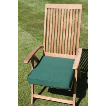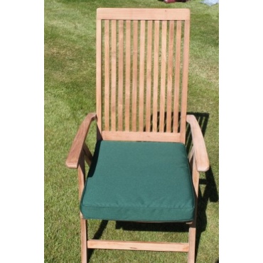 Die grüne Auflage für Gartenmöbel ist ein bequemes Sitzkissen für einen großen Gartenstuhl. Der Bezug ist waschbar und mit einem Reißverschluss versehen, damit die Füllung leicht und ohne Schwierigkeiten heraus genommen werden kann. Die Doppelpaspelierung sorgt für eine zusätzliche Strapazierfähigkeit.