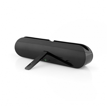 Gut verarbeitet ist der Lautsprecher. Es handelt sich hierbei um einen tragbaren Lautsprecher, der mit zwei Lautsprechern mit einer Leistung von jeweils 5 Volt ausgestattet ist. Er kann über Bluetooth oder über einen 3.5 mm Stereo Stecker verbunden werden. Die Energie kommt über einen Lithium-Akku, der mit einem vorhandenen Micro-USB Kabel aufgeladen werden kann. Die Ladezeit beträgt hierbei bis zu 3 Stunden. Der Lautsprecher kommt auf eine Größe von 24 x 4,2 x 6 cm, bei einem Gewicht von 440 Gramm. Farblich ist der Lautsprecher in einem schwarzen Farbton ehalten.