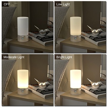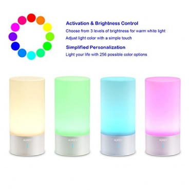 Die Lampe AUKEY LT-T6, ist eine Tischlampe, die je nach Stimmung des Nutzers ihr Farbe einstellen lässt. Da diese Lampe keinen Schalter hat, wird sie durch Handberührung aktiviert. Vom Design her ist sie zeitlos schlicht gehalten und passt gut als Nachttischlampe.Wenn die Lampe berührt wird, kann sie schnell die Farbe wechseln je nach Stimmung im Raum. Dabei dient der gesamte Lampenschirm als Fläche zum Berühren. So vereinfacht es die Bedienung auch Nachts ohne groß zu suchen. Es reicht wenn man das ca. 3 Sekunden lang die Lampe am Gehäuse berührt.