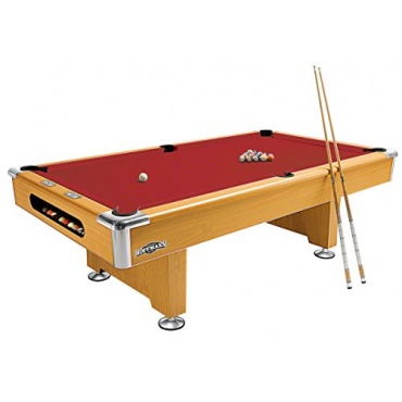 Bezogen ist der Tisch mit einem hochwertigen Turniertuch. Das Tuch ist Fleck abweisend und mit Kevlargewebe ausgestattet. Damit der Tisch sich leicht transportieren lässt, lässt er sich ohne Spezialwerkzeug zerlegen und aufbauen. Die Banden sind aus Natur - Kautschuk. Der Rückprall der Kugeln erfolgt präzise und dynamisch. Der Unterbau des Tisches ist aus Massivholz gefertigt, das im Mehrschicht - Verfahren verarbeitet wurde. Die Balltaschen aus Kunststoff sind schonend zu den Kugeln. Sie lassen sich gegen Balltaschen aus Leder austauschen. Bei diesem Tisch ist es möglich, einen zentralen Ballrücklauf einzubauen.