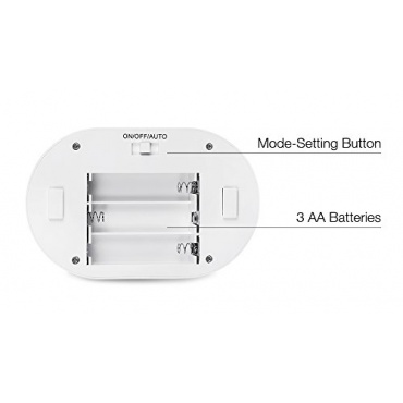 Aus der stabilen Pappverpackung genommen macht die gräuliche Kunststofflampe einen sehr schlichten Eindruck. Eher ein Designklassiker als optisches Highlight, aber das wurde auch nicht erwartet. Auf der Unterseite des Gerätes haben Sie die Möglichkeit, 3 AA Batterien, welche im Lieferumfang nicht enthalten sind, einzulegen. Der Deckel lässt sich einfach schieben. Im Inneren befanden sich zwei Klebepads, mit denen Sie das AVANTEK ELF-1A Motion-Activated Night Light überall dort anbringen können, wo Sie es brauchen.