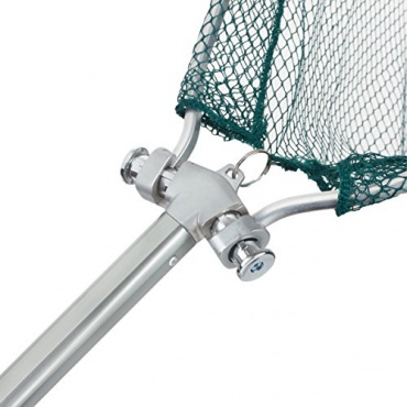Der Kescher besteht aus einem stufenlos verstellbaren Aluminium - Teleskopstiel, der mit einem rutschfesten Griff ausgestattet ist. Nasse Hände, wie sie beim Angeln üblich sein können , rutschen an diesem Stiel nicht mehr ab.