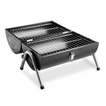 Dieser Tischgrill ist tragbar, leicht, und für größere Mengen Grillgut geeignet. Er verfügt über zwei Grillroste, einen Tragegriff sowie einen Schnappverschluss zum Verschließen. Der Grill kann also überall hin mitgenommen werden, wenn man etwa draußen grillen oder Freunde besuchen möchte. Mit einem Gewicht von nur 4 kg gestaltet sich der Transport sehr leicht. Der Grill kann einfach auf dem Gartentisch benutzt werden.