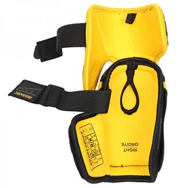 Die Passform ist insgesamt sehr gut. Der Spieler sollte seine Größe genau wissen und einschätzen können, bevor er mit dem Spielen und damit auch mit dem Schutz seines eigenen Körpers beginnen kann. Hier ist einfach alles perfekt. Der Ellenbogen wird ideal geschützt und ist immer gut aufgehoben in dem Schoner. Der Schoner verfügt über eine Donut Schlinge und natürlich auch über einen Klettverschluss. Damit lässt sich alles gut schließen.
