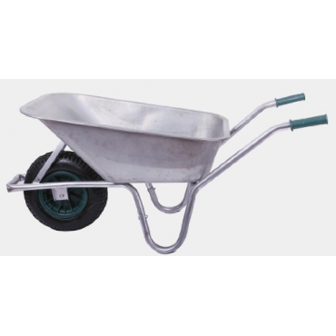 So stellt man sich eine robuste Schubkarre für Garten und Baustelle vor. 15 kg Eigengewicht, ein Fassungsvermögen in der Stahlblechmulde mit 100 Litern und ein Belastungsgewicht von maximal 250 kg. Wetterbeständige Feuerverzinkung am Stahlrohrrahmen und verzinktes Stahlblech, dass jeder Belastung und Korrosion widersteht. Auch die Bereifung zeigt sich sehr belastbar, damit lassen sich schwere einfach gut transportieren. Der Rahmen ist besonders über den Metall-Hartbügel fest und haltbar, diese Schubkarre ist optimal ausbalanciert.