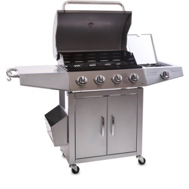 Integrierte Lüftungsschlitze sorgen für eine optimale Temperatur. Unter dem Grill befindet sich viel Stauraum, der für das Grillgut sehr gut geeignet ist. Auch ein Fettauffangbehälter für das Grillgut ist vorhanden. Ebenso können auch automatische Drehspieße genutzt werden. Besonders vorteilhaft ist der emailliert Warmhalterost, der sehr leicht zu reinigen ist. Eine zusätzliche Ablage eignet sich für das Grillbesteck. Die Brenner des Grills können einzeln eingestellt werden.