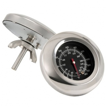 Der silber farbene BBQ-Bull Grillthermometer ist hitzebeständig bis über 400 Grad Celsius. DerThermometer ist für alle Grills, Smoker, sowie Räucherofen und Grillwagen perfekt geeignet. Das Grillzubehör hat eine analoge Anzeige und ein besonders edles und elegantes Aussehen.