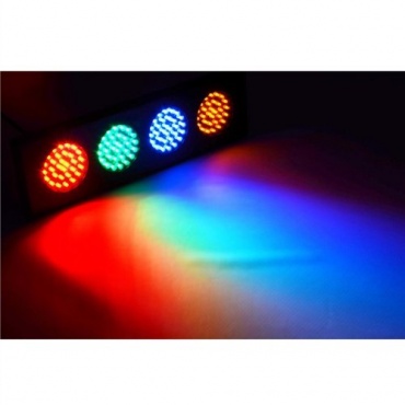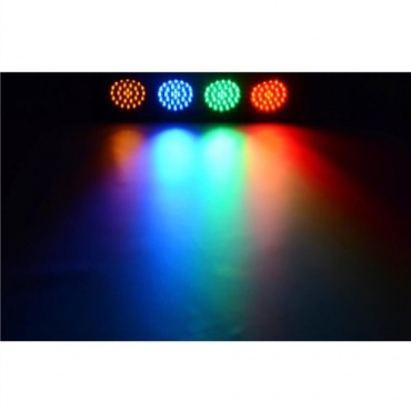 Die BeamZ DJ Bank 120 verfügt über insgesamt 120 Leds, die auf vier verschiedene Leuchten in den Farben Rot, Blau, Gelb und Grün verteilt sind. Die Lichterbank kann in zwei verschiedenen Weisen zum Einsatz kommen. Man entscheidet sich entweder für Automatik oder für Musiksteuerung, um die besten Effekte zu schaffen. Dabei sind Empfindlichkeit und Geschwindigkeit individuell einstellbar.