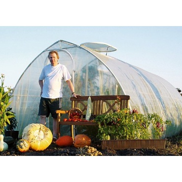 Die tragende Unterkonstruktion besteht aus feuerverzinkten Stahlrohren. Von hoher Qualität ist die Gartenbaufolie aus Polyethylen, auf die der Hersteller eine Vierjahresgarantie gibt. Die Lichtdurchlässigkeit ist auch noch nach Jahren konstant hoch. Das Gewächshaus verfügt über zwei Türen, was eine optimale Belüftung garantiert. Sie sind breit genug für eine Schubkarre. Das Gewächshaus wird als Bausatz geliefert, ein Fundament benötigt es nicht. Für den Aufbau sind keine Spezialkenntnisse erforderlich.
