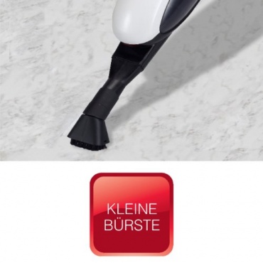Der Stabstaubsauger ist beutellos, deshalb entstehen keine Folgekosten. Der Filter muss nur ausgeklopft oder ausgebürstet werden, bei stärkerer Verschmutzung oder nachlassender Saugleistung kann er auch ausgewaschen werden. Mit der umschaltbaren und um 360 Grad drehbaren Bodenbürste lassen sich sowohl Teppiche ais auch Hartböden reinigen. Für den Handstaubsauger werden eine kleine kleine Bürste, eine Polsterdüse und eine Fugendüse mitgeliefert. Das Zubehör wird an einer Halterung an Gehäuse verstaut und ist so immer griffbereit.