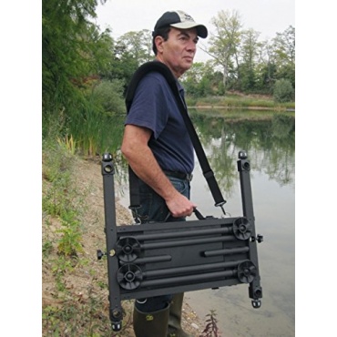 Um den Transport so unkompliziert wie möglich zu machen, ist der Feeder-Sitz gleich mit zwei entsprechenden Funktionen ausgestattet: Er verfügt über einen mit Schaumstoff überzogenen Tragegriff. Zusätzlich ist eine Halterung für einen Schultergriff montiert, der allerdings nicht zum Standard-Lieferumfang gehört. Ein besonderes Plus ist die Möglichkeit, den Sitz mit ein paar Handgriffen durch Beistelltisch, Rutenauflage und Futterwanne erweitern zu können. Hochwertig ist das Material. Der Sitz ist komplett aus eloxiertem Aluminium hergestellt.
