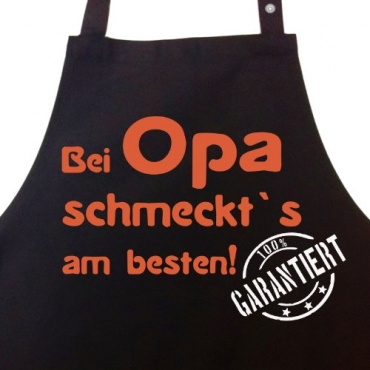 Durch das Tragen dieser Grillschürze werden Fettspritzer auf die Bekleidung vermieden und am aufgedruckten Spruch "Bei OPA schmeckts am besten" ist sofort zu erkennen, wer am Grill oder auch Herd steht. Sie ist belastbar und lässt sich gut tragen. Obendrein ist diese Kochschürze eine nette und witzige Geschenkidee für denjenigen Opa, der eigentlich schon alles hat und wunschlos glücklich ist.