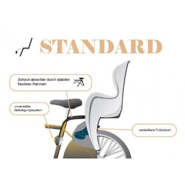 Die Sicherheit ist durch zahlreiche aufeinander abgestimmte Ausstattungsmerkmale gewährleistet. Dazu gehören ein 3-Punkte-Sicherheitsgurt, verstellbare Fußstützen sowie ein optimaler Fußschutz, der den Kontakt mit dem Rad in jeder Position verhindert. Die kindgerechte Materialwahl aus abwaschbarem und ungiftigem Kunststoff zeichnet den Kindersitz Tiger City zusätzlich aus. Die im kräftigen Rot gehaltene bequeme Polsterung ist mit Frottee kaschiert, herausnehmbar und leicht zu reinigen. Angenehm ist auch das dezente Design in klassischem Grau.