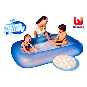 Der in Blau gehaltene aufblasbare Kinderpool von Bestway hat Maße von 1,65 x 1,04 m bietet Platz für zwei, maximal drei Kinder. Der Boden ist extra aufblasbar und das dickschichtige Material ist äußerst strapazierfähig und robust bearbeitet worden. Das Becken wiegt im leeren Zustand knapp über einem Kilogramm und ist somit jederzeit wieder rasch zum herrichten oder wegräumen. Um ein Auslaufen bestmöglich zu verhindern ist ein Sicherheitsventil vorhanden und die maximale Wasserkapazität beträgt 102 Liter.