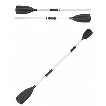 Das Bestway Kayak-Paddel eignet sich für das Paddeln im Sit on Top Kajak oder für den Freizeitausflug mit dem Schlauchboot. Die Stange wurde aus Aluminium gefertigt. Das Blatt besteht aus Kunststoff. Die Konstruktion macht einen soliden und langlebigen Eindruck. Ein Paddel hat eine Länge von 148 Zentimeter und kann bei Bedarf mittels Schraubverbindung zu einem Ruder mit 218 Zentimeter Länge zusammengesteckt werden.