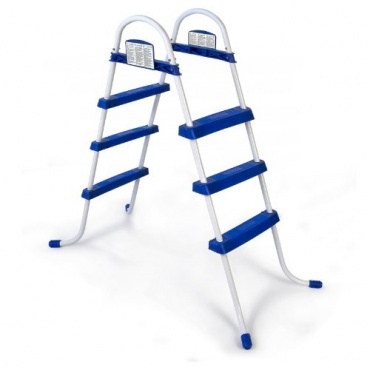 Mit Hilfe dieser Pool-Leiter kann man ganz sicher und problemlos in das Schwimmbecken ein - oder aussteigen. Die stabile Pool-Leiter ist verwendbar für Pools mit einer Wandhöhe von etwa 91 Zentimeter. Die Leiter ist rostbeständig und die drei Stufen auf jeder Seite der Leiter bieten auch bei Nässe einen sicheren und rutschfesten Halt. An den Füßen der Leiter sind rutschfeste Kunststoffummantelungen angebracht,welche die Bodenfolie des Beckens schonen