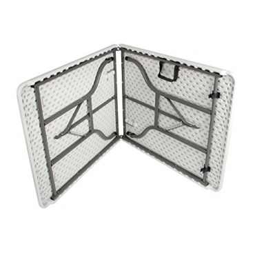 Die Bierbankgarnitur von Vanage besitzt wie die Standardmodelle robuste Metallfüße auf denen die Bänke und der Tisch stehen. Die Sitzflächen und die Tischplatte sind jedoch aus weißem Kunststoff gefertigt und weichem damit vom typischen Holzdesign ab. Das sonst typische Merkmal - die Möglichkeit Bänke und Tische zusammenzuklappen - bleiben jedoch erhalten. Praktischerweise werden alle Elemente sogar in der Mitte halbiert und so noch kompakter und transportabler. Außerdem ist an jeder Bank und jedem Tisch ein praktischer Tragegriff bereits integriert.