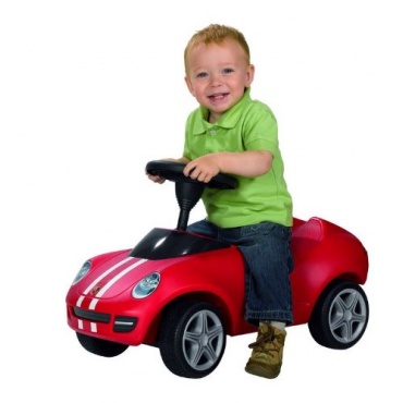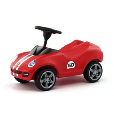 Kinder werden diesen Rutscher im Porsche-Stil lieben. Die Front-und Heckpartie machen das Bobby-Car auch äußerlich zum kleinen Bruder des echten Porsche. Das griffige Sicherheitslenkrad mit mechanischer Hupe und extra breiten Flüsterreifen weckt den Rennfahrer im Kind.