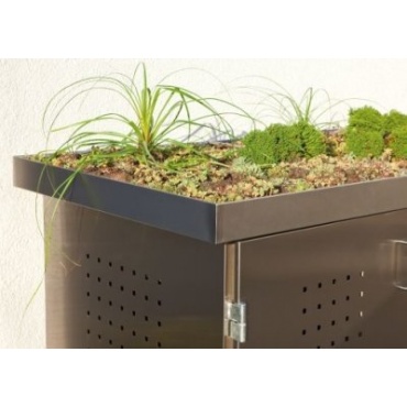 Die Mülltonnenbox der Firma BINTO ist aus Edelstahl. Diese ist geeignet für Mülleimer mit einem Fassungsvermögen von bis zu 240 Liter Volumen. Die Maße beträgt 84x206x129 cm. Das Produkt ist erweiterbar.