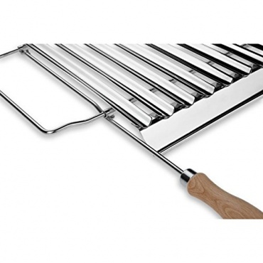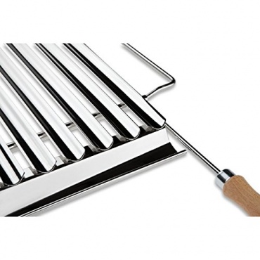 Aus lebensmittelechtem Edelstahl gefertigt stellt dieser Bio-Grillrost für ökologisch bewusste Käufer eine geeignete Wahl dar. Optisch präsentiert sich dieser Grill in einem eleganten Look. Eine einfache Handhabung ermöglichen die beiden Holzgriffe, die ein sicheres Entfernen von Feuerstellen gewährleisten. Für ein verbessertes Abtropfen des Fetts wurden Querstangen mit U-Profilen integriert.