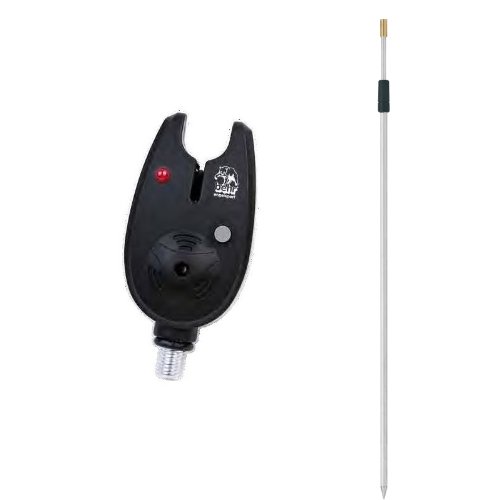 Vollständig aus Kunststoff verarbeitet ist der Bissanzeiger. Der Bissanzeiger zeigt elektronisch mittels einem Piepton und einem kleinen roten LED-Licht, jeden Biss eines Fisches an. Zum Betrieb benötigt der Bissanzeiger eine Stromversorgung. Sichergestellt wird die Stromversorgung beim Bissanzeiger mittels einer 9 Volt Blockbatterie. Farblich ist der Bissanzeiger vollständig in einem schwarzen Design gehalten. Zum Lieferumfang beim Bissanzeiger gehört auch ein passender Erdspieß dazu.