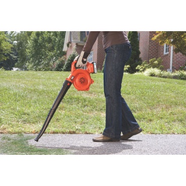 Der orangefarbene 2,5 Kg schwere Laubbläser von Black & Decker hat eine Maximalleistung von 18 Volt, dabei entwickelt er eine Blasgeschwindigkeit von bis zu 192 km pro Stunde. Der Akku des leichten Geräts braucht in etwa 8 Stunden um sich wieder voll aufzuladen. Das Akku-System des Laubbläsers funktioniert mittels Li-Ion-Technik. Dieser Laubsauger bringt ein Konzentrierrohr sowie einen Laubkratzer mit. Die Handhabung des Arbeitsgeräts ist ergonomisch und komfortabel. Die Anwendungsmöglichkeiten sind vielseitig.