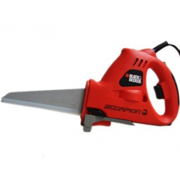 Die Scorpion Säge von Black und Decker weist eine Hubzahl von 0 bis 5500 H/min auf. Die Blattlänge beträgt 239 - 153 - 134 mm. Außerdem ist die Säge mit einem Softgriff ausgestattet, der ein angenehmes Arbeiten möglich macht. Als Zubehör bieten sich das Handsägeblatt, ein Kurvensägeblatt und ein Metallsägeblatt an. Mit dem Sägeschuh, der zu klappen ist, bieten sich die elektrische Handsäge an und auch der Kurvenschnitt, der ganz einfach gemacht werden kann.