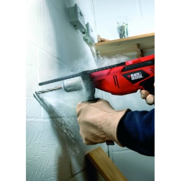 Die Black&Decker KR653K QS-Schlagbohrmaschine 650 Watt gefällt durch ein ansprechendes Design, eine einfache und sichere Handhabung, eine hochwertige Verarbeitung und einen guten Preis. Damit der Anwender die optimale Kontrolle beim Schrauben oder Bohren hat, wurde das Elektrowerkzeug mit einer elektronischen Geschwindigkeitsregelung ausgestattet. Nützliche Features sind der Arretierknopf für den Dauerbetrieb, ein einteiliges Metall-Schnellspannbohrfutter und die innovative Kohlebürsten, welche eine volle Leistung beim Links- und Rechtslauf gewähren und den Verschleiß verringern.