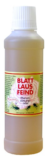 Der Blattlaus-Feind ist ein biologisches Konzentrat zur effektiven Bekämpfung im Garten und bei Zimmerpflanzen. In dem Konzentrat befinden sich u.a. Neemöl, Lavendel und Lebermoosextrakt. Dieses Mittel wird in Wasser aufgelöst und damit werden die befallenen Pflanzen besprüht. Die Pflanze nimmt das Mittel in sich auf und es bildet sich von innen ein wirksamer Schutz gegen die Blattläuse. Können diese die Pflanzen nicht mehr ansaugen, verkümmern sie. Effektiv wird das Mittel eingesetzt bei einer 4-tägigen Kur, welche alle 2 Monate wiederholt werden sollte.
