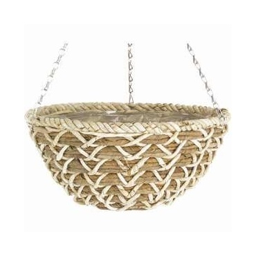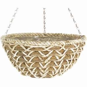 Die Blumenampel, Hängekorb Ø 35 cm hat einen abgerundeten Korb aus geflochtenem Bananengras. Innen ist die Ampel mit einem Polybeutel ausgekleidet. Sie ist eine Verwertung von Naturmaterialien und dazu noch sehr dekorativ. Die Blumenampel kann direkt bepflanzt werden oder man stellt einen Blumentopf hinein. Der Polybeutel verhindert das Auslaufen des Wassers und die Berührung des Geflechts mit dem Wasser.
