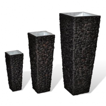 Das Set besteht aus drei unterschiedlichen großen Töpfen. Dadurch lassen sich wunderbare Arrangements verwirklichen, die zu einem echten Eyecatcher werden. Das dunkle Rattan bildet hierbei einen wunderbaren Kontrast zu dem Grün der Pflanzen. Die Größe der Töpfe liegt bei 15 x 15 x 40 cm und bei 12 x 12 x 15 cm für den kleinen Rattantopf. Die Übertöpfe sind handgeflochten und somit ist jeder Topf ein echtes Unikat. Die Innentöpfe sind wasserfest, sodass man auch Blumen im Haus arrangieren kann.