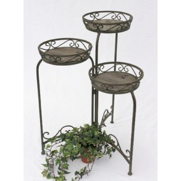 Die Blumentreppe 11136 ,,Malaga" wird aus ausgewählten Metall geschmiedet und beinhaltet insgesamt drei Körbe. Diese Körben besitzen einen Durchmesser von rund 25 Zentimeter pro Korb. Die einzelnen Körbe sind aufwendig verziert und sind somit ein dekoratives Zimmerelement. Diese ganze Konstruktion ist ganz einfach aufklappbar beziehungsweise zusammenklappbar. In diesen Körbe kann man beispielsweise Pflanzen stellen, dessen Triebe beispielsweise sehr lang sind und nach unten wachsen.