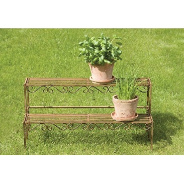 Auf den ersten Blick wirkt diese Blumentreppe mit ihren zwei Stufen durchaus etwas älter und alt, jedoch gilt es hierbei dies als Absicht zu erkennen. Interessant ist hierbei das verwendete Metall in der Fertigung, welches einen Rost Anblick erhalten hat und somit etwas rustikales ausstrahlt. Genau dies passt perfekt in den Garten und auch zu den Pflanzen. Weiterhin spricht es für sich, dass die Blumentreppe schnell aufgebaut ist und zugleich ausreichend Abstellfläche und Tiefe vorhanden ist, um auch größere Pflanzen problemlos darauf platzieren zu können.