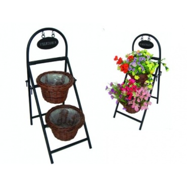 Die Blumentreppe besteht aus stabilem Metall. Die Rundrohre aus Stahl sind schwarz lackiert und damit wetterfest und korrosionsbeständig. Das Willkommensschild hängt mittig an zwei großen Haken und ist nicht zu übersehen, selbst dann nicht, wenn sich die Bepflanzung saisonal ausbreitet. Die Blumentreppe ist eine imposante Erscheinung und hat ein sehr dekorative Wirkung. Zum Lieferumfang gehören zwei dunkelbraune Weidenkörbe, die das Gestell der Blumentreppe immens aufwerten.