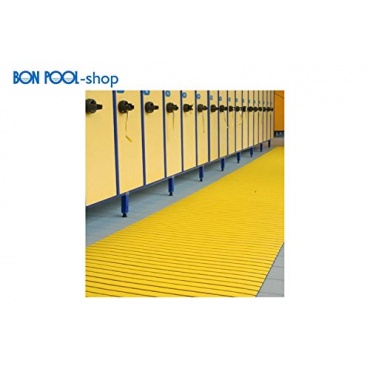 Die BON POOL rutschfeste PVC-Bodenroste beugen Unfallgefahr vor. Kinder, die schnell rennen, sind vor dem Ausrutschen geschützt, ebenso ältere Menschen, die vorsichtig über die Schwimmbadwege gehen. Durch den allseitigen Wasserablauf bildet sich kein stehendes Naß auf den Rosten, der Schimmelbildung ist somit vorgebeugt. Damit es der grundlegenden Hygienereinigung im Schwimmbadbereich, der besonders in öffentlichen Bädern eine besondere Bedeutung zukommt, einfach und leicht gemacht wird, kann man die BON POOL rutschfeste PVC-Bodenroste schnell zusammenrollen.