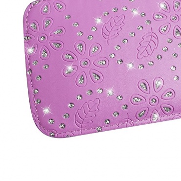 Die Boriyuan Bling Bling Handytasche Handysocken Lila ist aus sehr strapazierfähigem PU Leder fertigt. Dieses flexible und sehr robuste Material sorgt für idealen Schutz ihres wertvollen Handy oder Smartphone. Optisch wurde einiges getan um diese doch sehr einfache Handytasche aufzuwerten. Die Farbe an sich Lila violett ist schon der optische Anreoz und zudem gibt es Straß, der in einem gepräpgtem Blattmuster eingelegt ist. Die Nähte sind sehr aufwändig gearbeitet und versprechen lange Haltbarkeit und optimalen Nutzen.