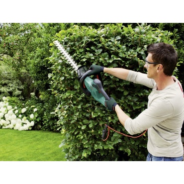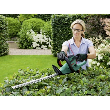 Die Bosch AHS 45-26 Heckenschere eignet sich besonders gut für Arbeiten an größeren Hecken und Sträuchern. Durch die 26 mm Zahnöffnung und die 45 cm Schwertlänge des Gerätes ist schnelles und genaues Schneiden garantiert kein Problem mehr. Obendrein besitzt dieses Modell auch noch eine Sägefunktion. Müheloses bedienen garantiert der 550 Watt starke Motor der Bosch AHS 45-26 Heckenschere.