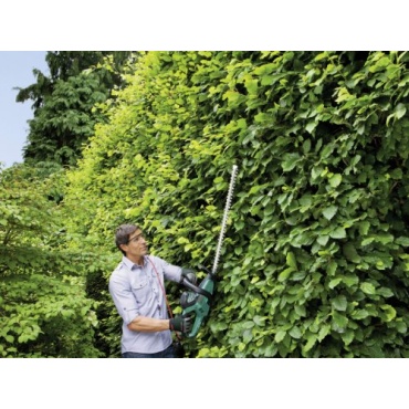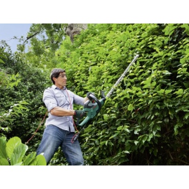 Für den Fall, dass besonders sperrige und holzige Hecken bearbeitet werden sollen, ist die Bosch AHS 70-34 Heckenschere der perfekte Helfer. Sie verfügt über eine Schwertlänge von 70 Zentimetern und einer Zahnöffnung von 34 Millimetern. Der 700 Watt Motor der Heckenschwere sorgt für perfekte Schnittergebnisse. Auch die integrierte Sägefunktion und die hohe Schnittgeschwindigkeit werden als sehr hilfreich vom Nutzer empfunden.