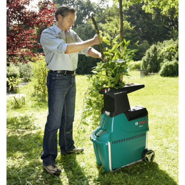 Der Bosch AXT 25 TC Häcksler ist selbsteinziehend und leise. Höchst komfortables Häckseln ist angesagt!