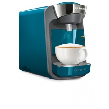 Die Tassimo T32 Suny ist eine Kaffee Kapselmaschine aus dem Hause Bosch. Mit Hilfe von Kapseln wird Kaffee oder andere Getränke bereitet. Die Kapseln dieser Maschine heißen T-Discs diese sind äußert intelligent durch den aufgedruckten Barcode erkennt die Maschine die Kaffeesorte und brüht automatisch die richtige Wassermenge dafür. Bei den T-Dics gibt es eine sehr große Auswahl über 40 Geschmacksorten sind erhältlich.