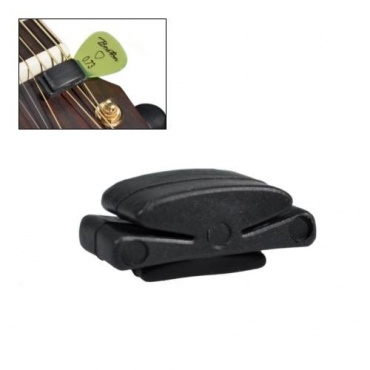 Der Boston Pick Holder aus Gummi kann problemlos im 0. Bund der Gitarre zwischen den Saiten angebracht werden. Dadurch sind während des Spiels stets zwei Plektren griffbereit. Auf diese Art und Weise gehen die kleinen Plektren nicht so schnell verloren, müssen nicht gesucht werden und sind beim Gitarrenspielen immer verfügbar.