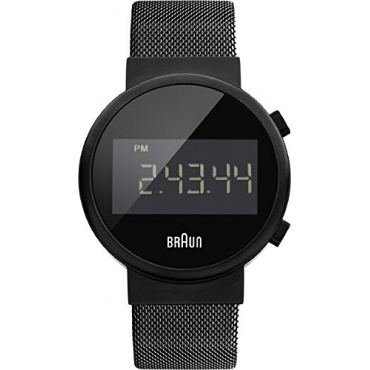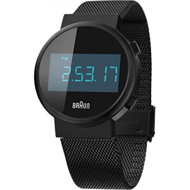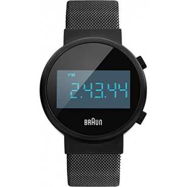Die schwarze Digitaluhr von Braun ist aus Edelstahl hergestellt und hat die Anzeige in Form von gut ablesbaren LEDs. Die Quarzuhr mit Edelstahl-Armband und Faltschließeseform. Die runde Gehäuseform kommt sportlich und elegant zugleich daher und ziert jedes Handgelenk.