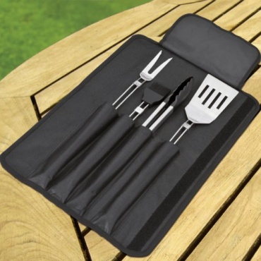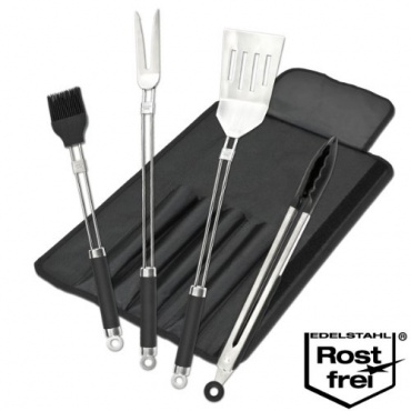 Das Grillbesteck ist aus Edelstahl hergestellt und in einem zeitlosen Design gestaltet. Zum Set gehört eine praktische Tasche, so können sämtliche Grillbesteck-Teile bei Nichtgebrauch verstaut werden und man hat beim nächsten Grillen alles wieder gleich zusammen. Die Tasche ist strapazierfähig. Zum Set gehört ein Wender, eine Gabel, eine Zange mit Arretierung sowie ein Pinsel mit Silikonborsten.