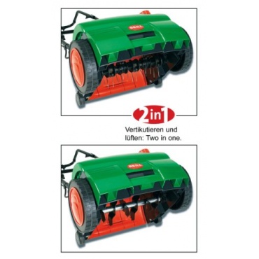 - Einfacher Wechsel zwischen Vertikutierwalze und Lüfterwalze, Arbeitstiefe leicht einstellbar, sehr wendig, lässt sich leicht vorwärts bewegen, einfache Reinigung, große Schnittbreit