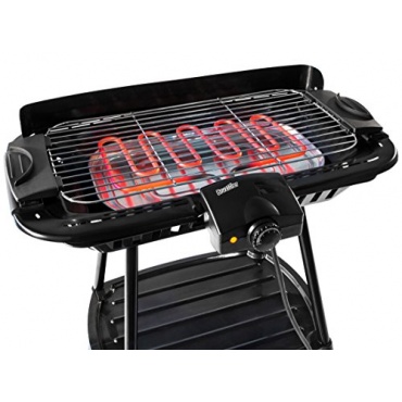 Solide verarbeitet ist der Elektrogrill, der neben dem Grill auch mit einem stabilen Untergestell ausgestattet ist. Der Elektrogrill kommt auf eine Leistung von rund 2000 Watt, die Temperatur beim Elektrogrill kann in mehreren Stufen eingestellt werden. Die Temperatur vom Elektrogrill kann man anhand eines eingebauten Thermometers erkennen. Der Elektrogrill ist mit einer wassergefüllten Grillwanne ausgestattet, die sorgt dafür, das man ohne größere Rauch- und Geruchtsentwicklung grillen kann. Das Gewicht vom Elektrogrill beträgt 4.3 kg.