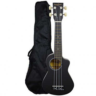 Eine Ukulele in diesem Stil sieht man eher selten. Denn die Bugs Gear SCG UK11BK Ukulele sieht ganz besonders aus. Sie ist mit einem Cutaway versehen und wirkt dadurch zunächst wie eine kleine Westerngitarre. Aber auf den zweiten Blick irgendwie doch nicht, weil das Schallloch nicht mittig platziert ist, sondern gegenüber des Cutaways. Dadurch bekommt diese Ukulele eine ganz besondere Optik.