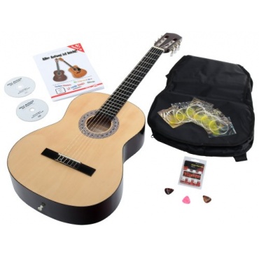 Boden und Decke der Konzertgitarre bestehen aus gesperrtem Lindenholz, der Hals wiederum aus Ahorn. Durch die einfache Bespielbarkeit der Gitarre stellen sich rasch erkennbare Erfolge ein. Mit Ihrer natürlich hellen Oberfläche und den wunderbar verzierten Stimmmechaniken sieht sie einfach nur gut aus.